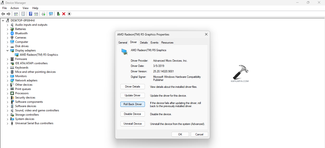 Wenn das Problem durch das Aktualisieren der Treiber nicht behoben wird, versuchen Sie, die Treiber auf die vorherigen Versionen zurückzusetzen, und prüfen Sie, ob es hilft. Befolgen Sie die nachstehenden Schritte.