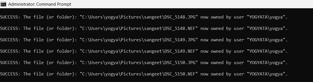 3. Gewähren Sie dann mit icacls die volle Kontrolle"C:PathToFile_or_Folder" /grant YourUsername:F /t