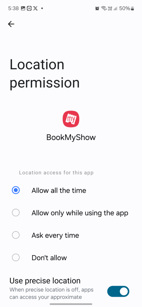 Schritt 4:Überprüfen Sie jede App und wählen Sie die entsprechende Berechtigungsstufe aus:Wählen Sie „Immer zulassen“, „Nur während der Nutzung der App zulassen“ oder „Verweigern/Nicht zulassen“.