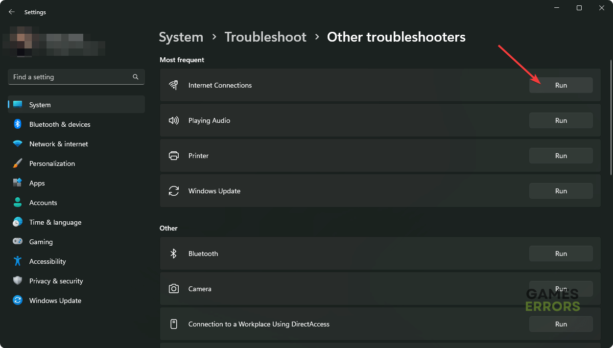 4. Klicken Sie aufLaufenneben Internetverbindungen.