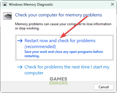 Es ist auch möglich, dass die RAM-Module vorübergehende Probleme haben, die verhindern, dass sie im aktivierten XMP-Modus normal funktionieren. In diesem Fall kann die Ausführung des Speicherdiagnosetools das Problem mit dem Spielabsturz lösen.
