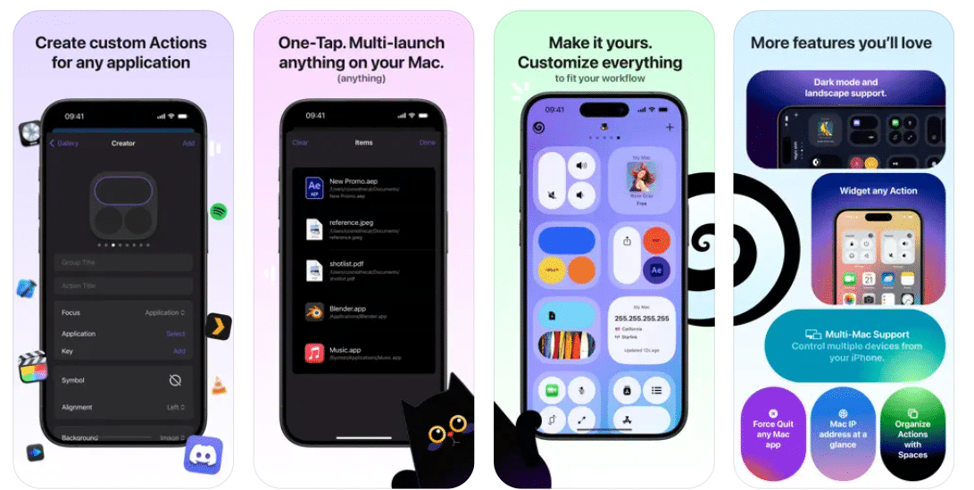 Mit der „Spaces“-Funktion von Gateway können Sie Ihre Aktionen in intuitiven Gruppen organisieren und so die benötigten Befehle leicht finden und ausführen. Egal, ob Sie den Dunkelmodus oder das Querformat bevorzugen, die App passt sich Ihren Vorlieben an. Und mit der Option, jede Aktion in ein Widget umzuwandeln, können Sie direkt von Ihrem Startbildschirm aus auf Ihre Lieblingsbefehle zugreifen.