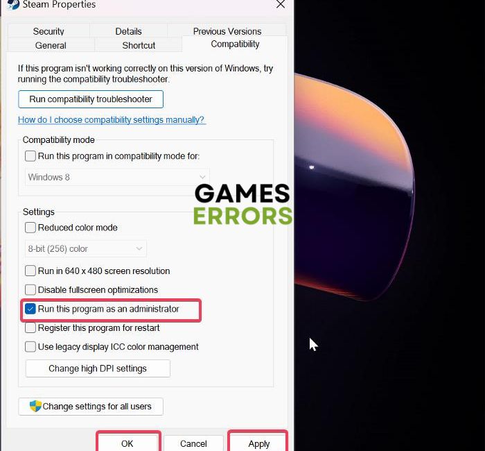 3. ImEinstellungenStellen Sie sicher, dass im Abschnitt „Führen Sie dieses Programm als Administrator aus