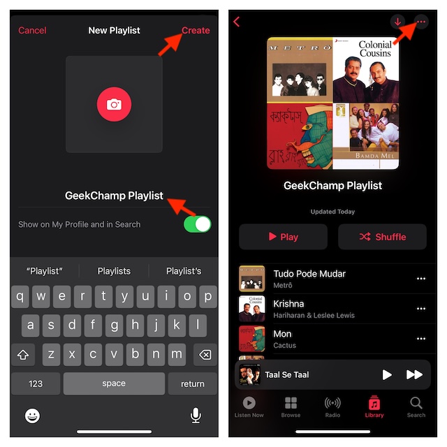 6.Nachdem Sie Ihre Musikwiedergabeliste angepasst haben, tippen Sie aufErstellenSchaltfläche in der oberen rechten Ecke des Bildschirms.