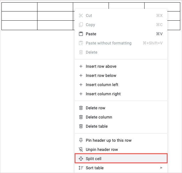 Sie können in einer Tabelle auch das Gegenteil tun und Zellen teilen, anstatt sie zusammenzuführen. Dies ist eine der neuen Funktionen, dieGoogle wurde im Oktober 2022 zu Docs hinzugefügt.
