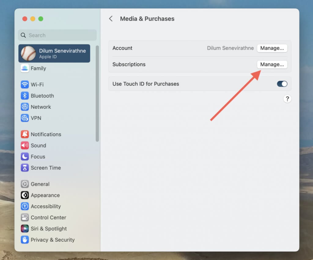 - Scrollen Sie nach unten zumVerwaltenAbschnitt und wählen Sie ausAbonnements.