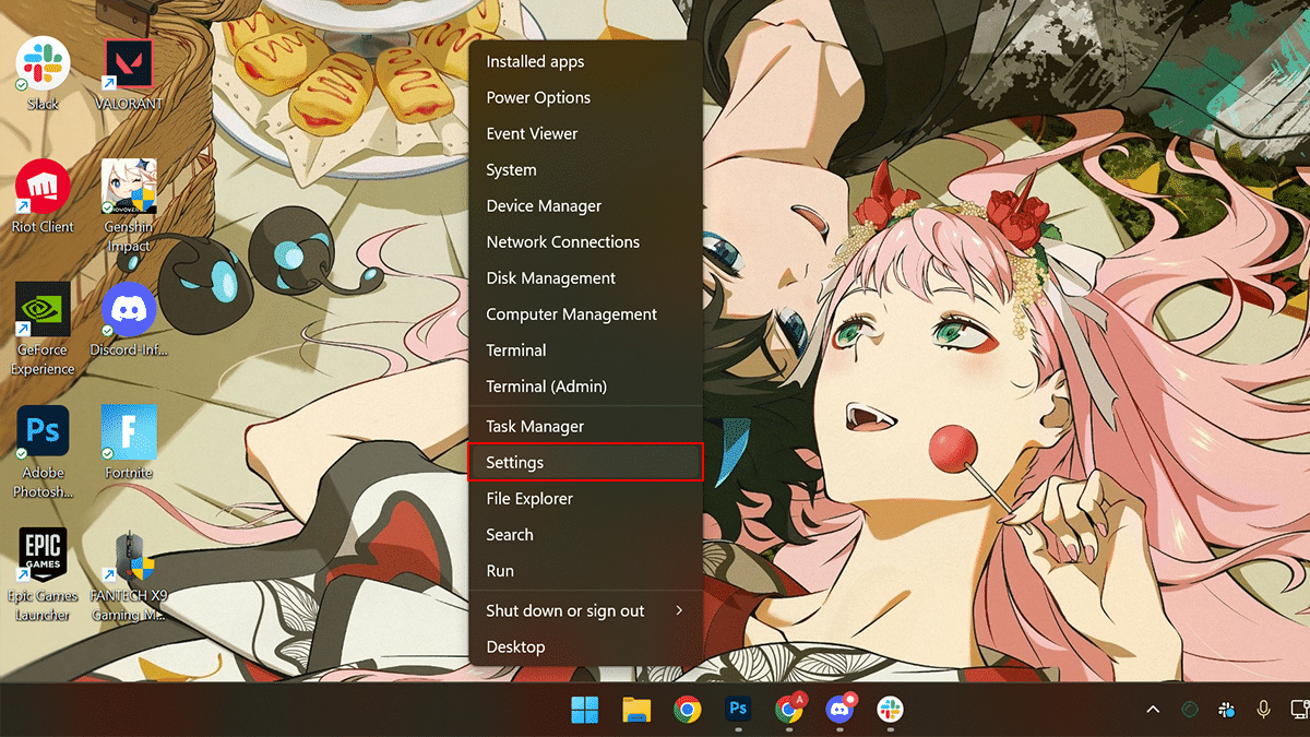 - Klicken Sie mit der rechten Maustaste aufStart> klicken Sie aufEinstellungen.
