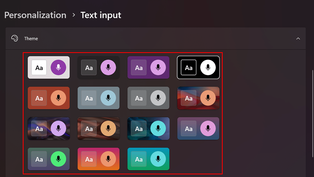 - Wählen Sie das Thema für die Touch-Tastatur, die Spracheingabe und das Emoji-Bedienfeld aus.