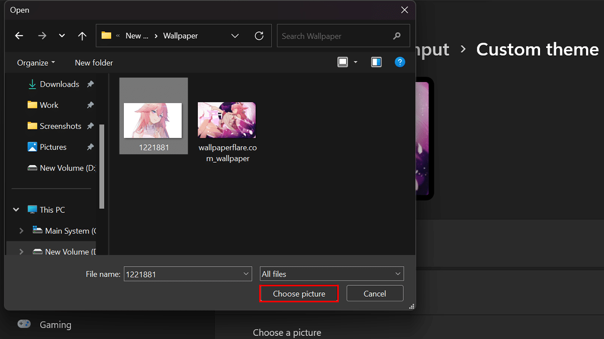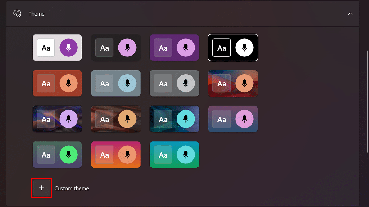 - Unter dem „ThemaKlicken Sie im Abschnitt aufBenutzerdefiniertes ThemaTaste.