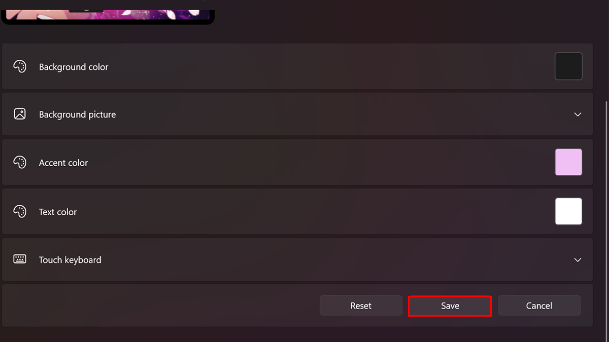 - Beim Anpassen der Touch-Tastatur können Sie auf „Touch-Tastatur”-Einstellung, um die Größe der Tastatur, die Schriftgröße und die Anzeige des Tastenhintergrunds zu ändern.