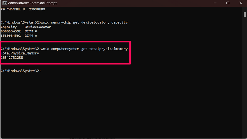 wmic computersystem get totalphysicalmemory