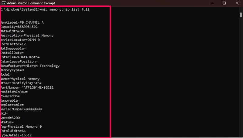 So können Sie also mit dem Eingabeaufforderungstool bestimmte oder alle RAM-Informationen auf Ihrem Windows 11-PC oder -Laptop überprüfen.