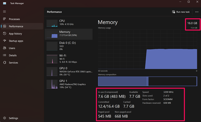 Wenn Sie nun in Echtzeit Details und andere technische Informationen zum Arbeitsspeicher Ihres Windows 11-PCs oder -Laptops erfahren möchten, können Sie sich auf den Task-Manager verlassen. Der Task-Manager in Windows 11 ist eine tolle Informationszentrale, die nicht nur Echtzeitinformationen zu den Prozessoren und GPUs, sondern auch zum RAM Ihres PCs oder Laptops anzeigt.
