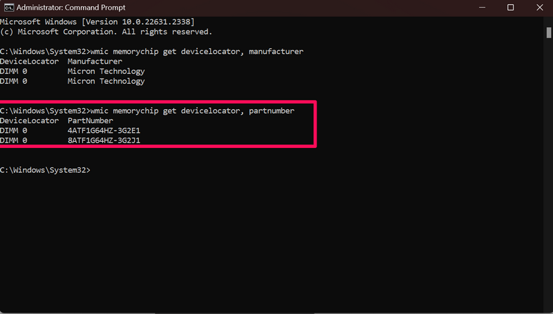 wmic memorychip get devicelocator, partnumber3.Du wirstFinden Sie die Teilenummerdes installierten RAM werden in der Eingabeaufforderung angezeigt.