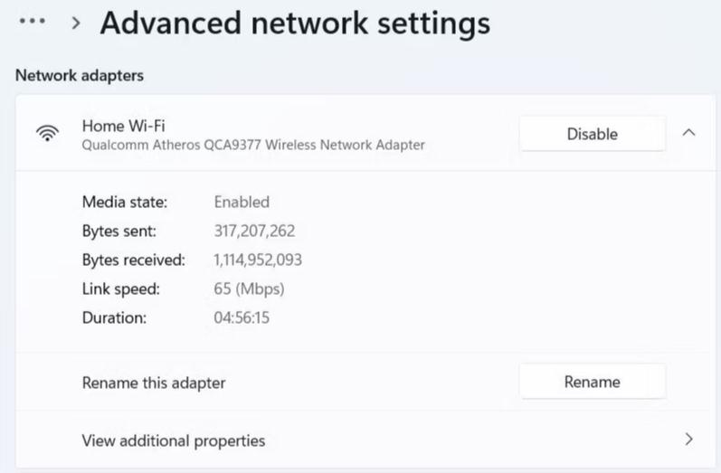 Schritt 4:Überprüfen Sie die nebenstehende BetriebszeitDauerindem Sie auf den aktiven Netzwerkadapter unter klickenNetzwerkadapterAbschnitt.