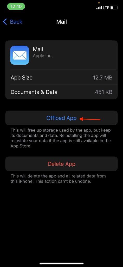 4.Dann finden Sie dieApp entladenOption und klicken Sie darauf.