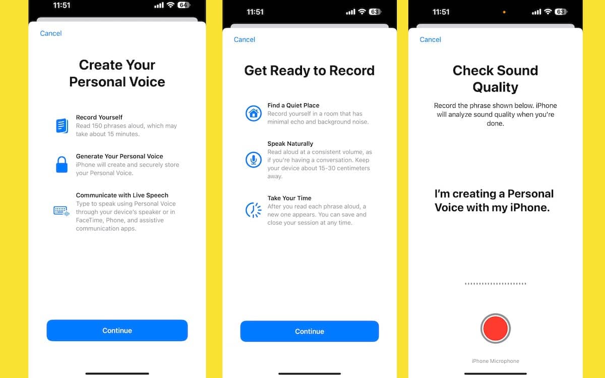 Im Rahmen seines Engagements für die Entwicklung integrativer Produkte hat Apple in iOS 17 eine neue Funktion für den Sprachzugriff eingeführt: Personal Voice. Die neue Funktion ist für Benutzer konzipiert, bei denen Amyotrophe Lateralsklerose (ALS) diagnostiziert wurde oder die unter anderen Erkrankungen leiden, die ihre Sprechfähigkeit zunehmend beeinträchtigen könnten, um auf private und sichere Weise eine digitale Nachbildung ihrer Stimme zu erstellen.