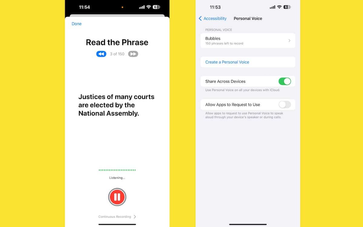 Die Barrierefreiheitsfunktionen „Personal Voice“ und „Live Speech“ sind auf allen Apple-Geräten verfügbar. Sobald die benutzerdefinierte Stimme erstellt wurde, können Benutzer sie geräteübergreifend synchronisieren.