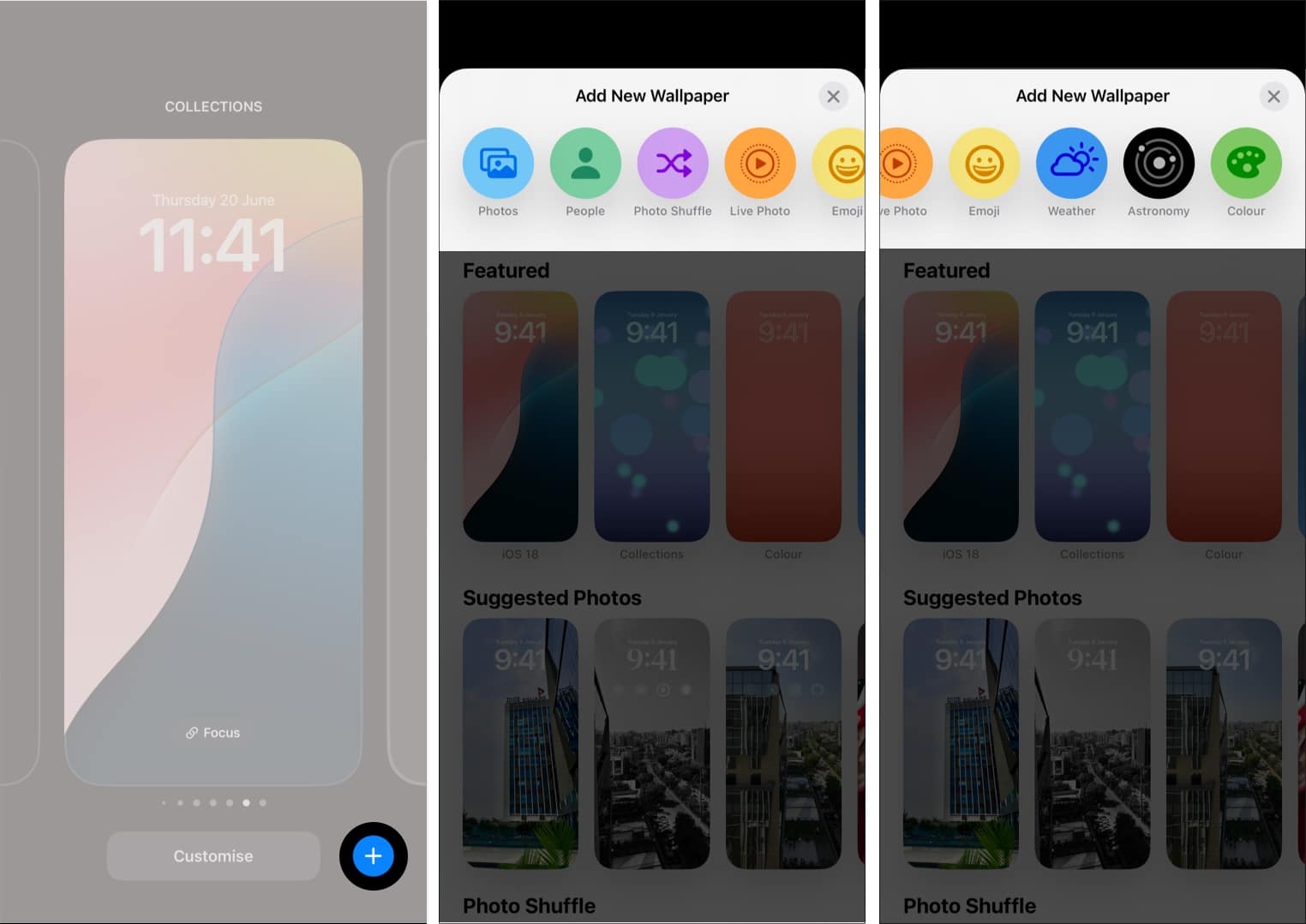 Die Auswahl des gewünschten Hintergrundbilds ist der erste Schritt zum Anpassen eines Sperrbildschirms auf einem iPhone. Apple bietet Ihnen mehrere Hintergrundstile zur Auswahl: