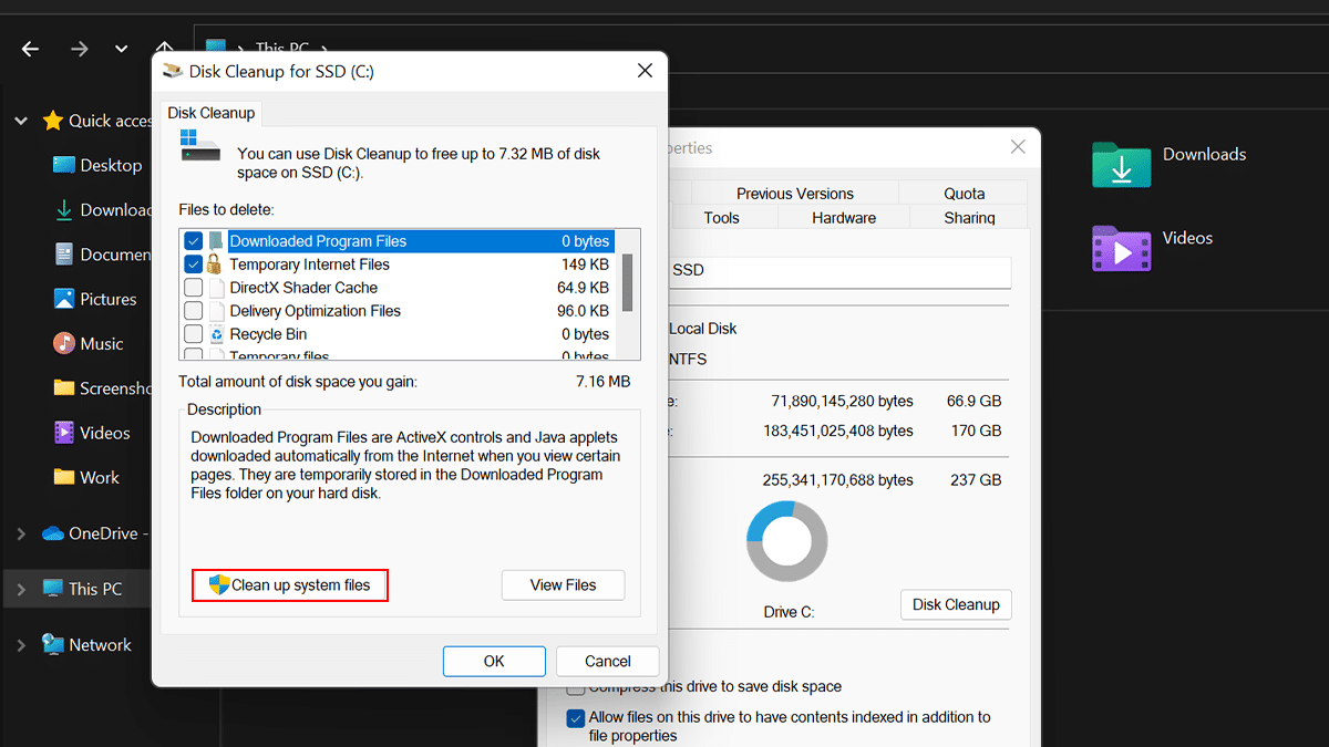 - Klicken Sie auf dieReinigungssystemdateienTaste.