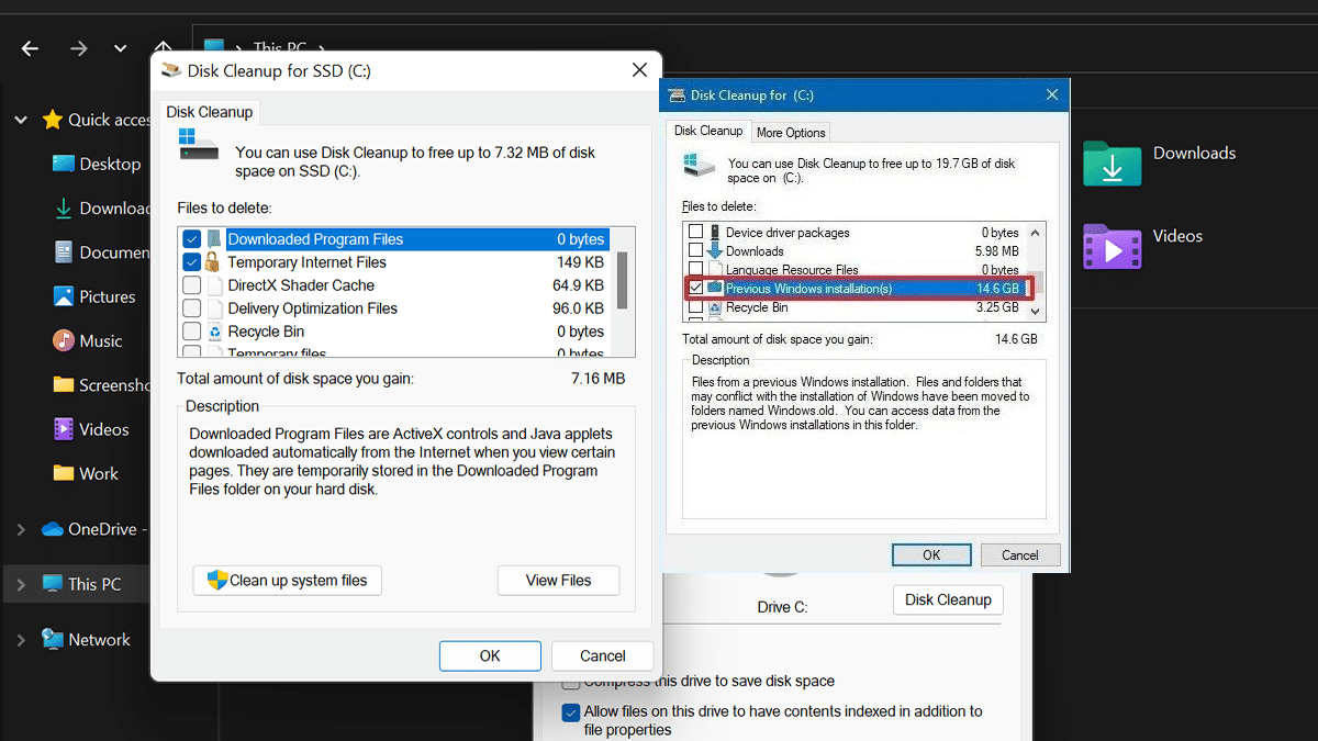 So löschen Sie die alten Ordner der Fenster aus der Festplattenreinigung