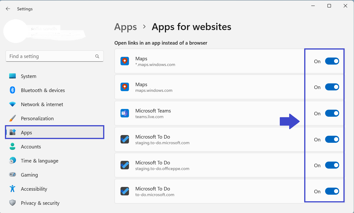 3. Klicken Sie im rechten Bereich auf „Web-zu-App-Verknüpfung mit App-URL-Handlern konfigurieren“.
