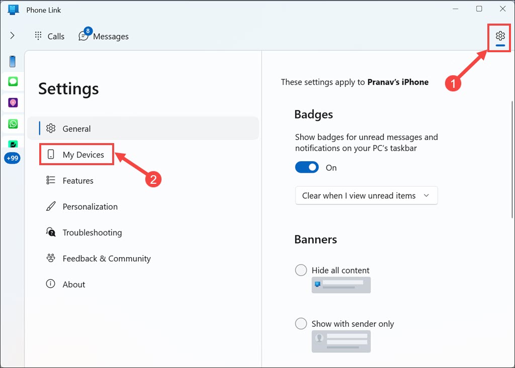 Bitte beachten Sie, dass dieser Vorgang je nach Version der Phone Link-App leicht variieren kann. Die allgemeinen Schritte sollen Ihnen jedoch dabei helfen, die Verknüpfung Ihres Telefons aufzuheben.