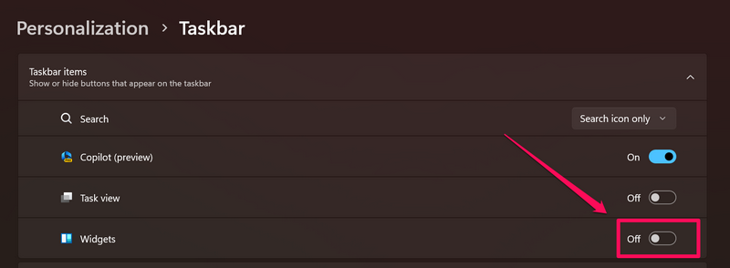 Dies ist eine der einfachsten Methoden, um die Widgets in Windows 11 zu deaktivieren. Dies hilft Ihnen zwar, versehentliche Hover-Bewegungen zu vermeiden, die die Widgets-Benutzeroberfläche in Windows 11 öffnen, es verhindert jedoch nicht, dass die Widgets im Hintergrund ausgeführt werden, wie bereits erwähnt.
