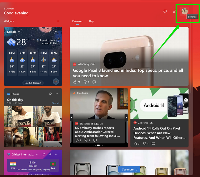 1. Öffnen Sie das Widgets-Boardüber die Taskleiste oder mit der Tastenkombination Windows + W auf Ihrem PC oder Laptop.