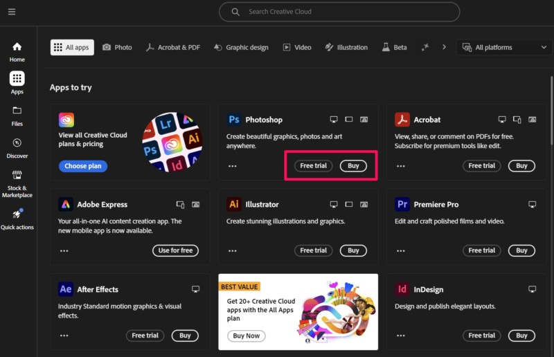 Daher müssen Sie die Adobe Creative Cloud-App herunterladen und installieren, bevor Sie die Photoshop-App auf Ihrem Windows 11-Gerät installieren.