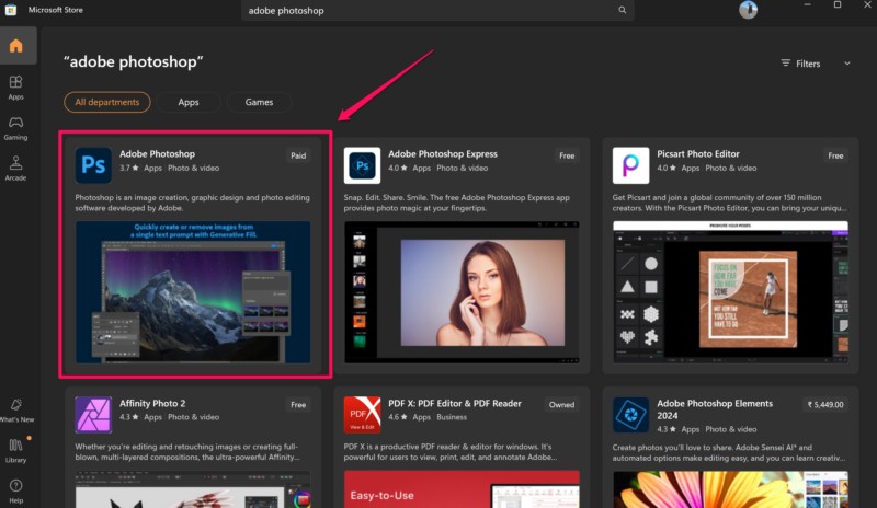 Sehen Sie sich vor diesem Hintergrund die folgenden Schritte an, um Adobe Photoshop aus dem Microsoft Store herunterzuladen und auf Ihrem Windows 11-PC oder -Laptop zu installieren: