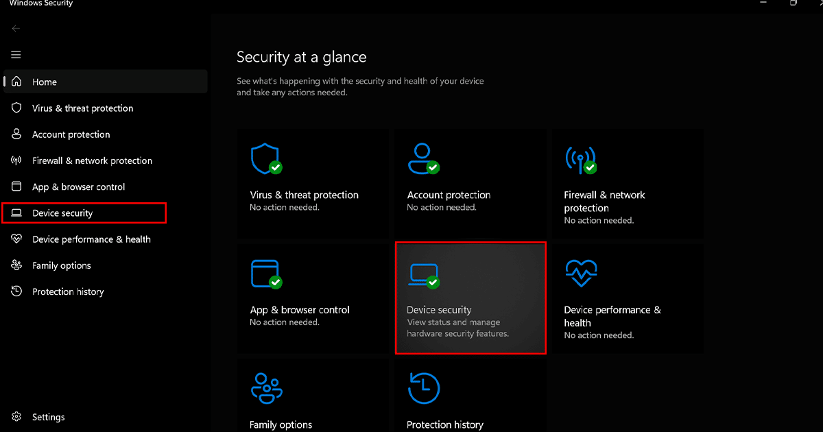 - Klicken Sie auf der linken Seite des FenstersGerätesicherheit.