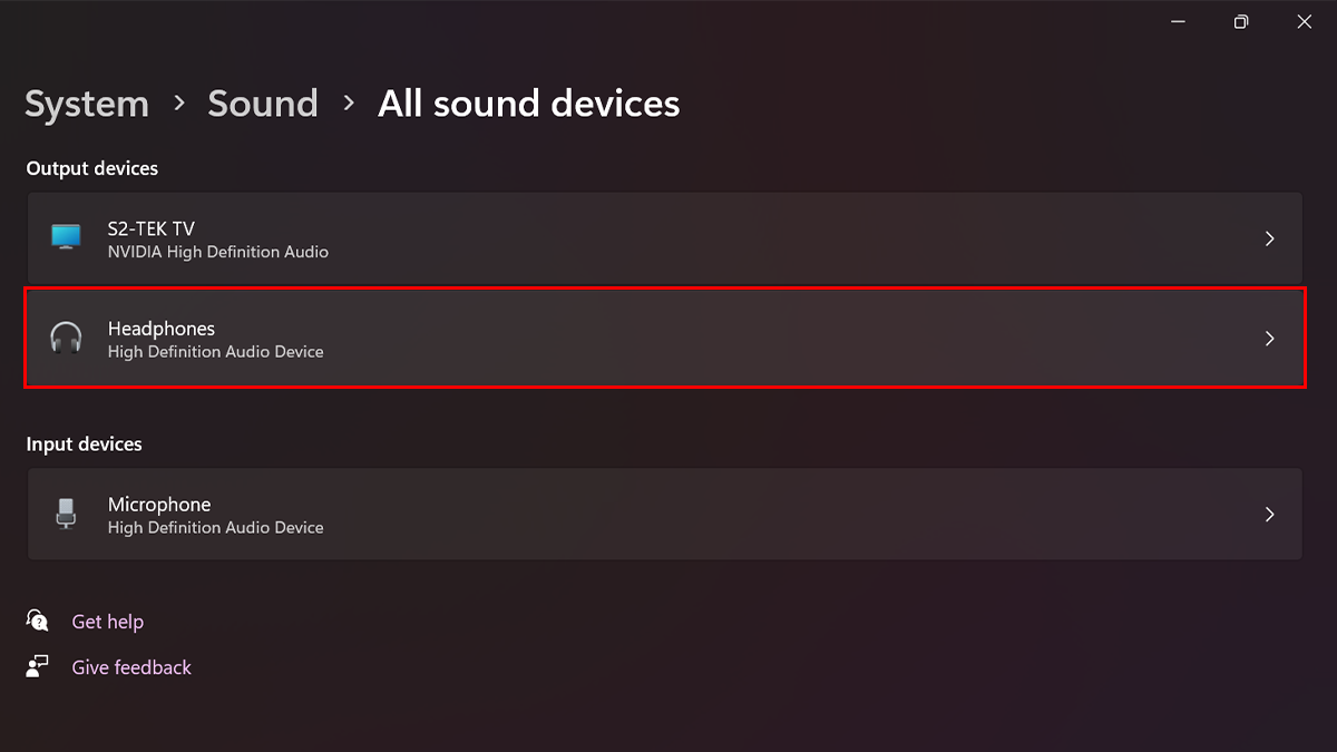 - Unter dem „AusgabegeräteWählen Sie im Abschnitt „Geräteeinstellung“ die von Ihnen verwendete Geräteeinstellung aus.
