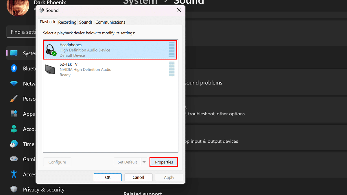 - Wählen Sie das Ausgabegerät aus und klicken Sie dann aufEigenschaftenTaste.