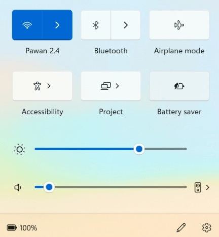 Schritt 1:Drücken Sie Win + A, um das Menü „Schnelleinstellungen“ zu starten.