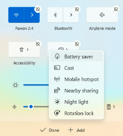 Schritt 4:Klicken Sie aufErledigtOption zum Hinzufügen der Option „Batteriesparmodus“ im Menü „Schnelleinstellungen“.