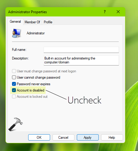 net user Administrator <password> /active:yesIm obigen Befehl müssen Sie ersetzen<Passwort>Geben Sie das tatsächliche Passwort ein, das Sie mit dem Administratorkonto verwenden möchten.