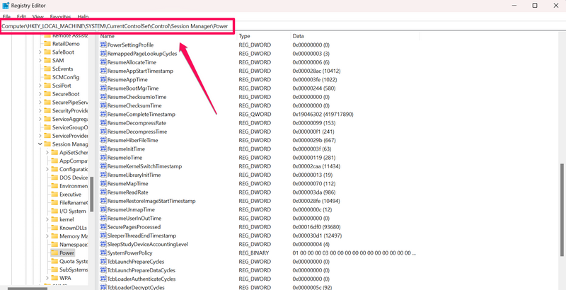 HKEY_LOCAL_MACHINESYSTEMCurrentControlSetControlSession ManagerPower
