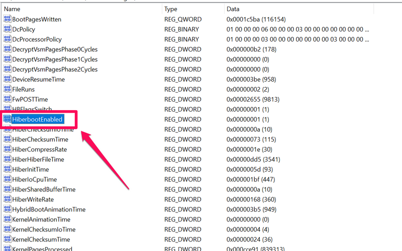 5.Suchen Sie im rechten Bereich nachHiberbootEnabledSchlüssel undDoppelklicken Sie darauf zu öffnenseine Eigenschaften.