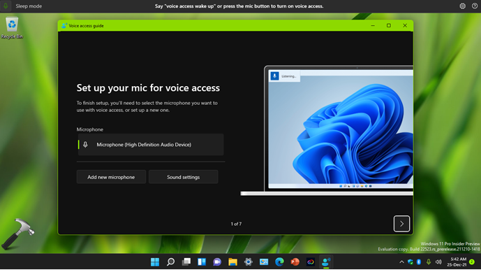 5.Sobald die Einrichtung abgeschlossen ist, wird die Sprachzugriffsanleitung angezeigt. Auf dem ersten Bildschirm können Sie das Mikrofon auswählen, das Sie verwenden möchten. Wenn Sie diese Anleitung überspringen möchten, können Sie auf dem zweiten Bildschirm auf Anleitung überspringen klicken.