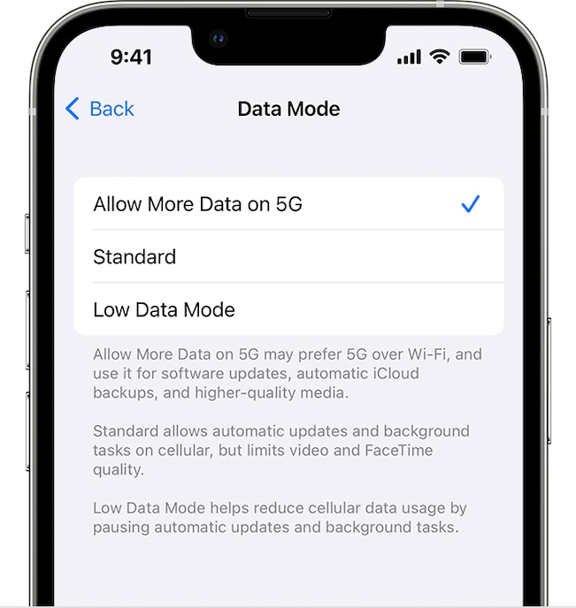 - Wenn Sie jedoch 5G nutzen möchten, ohne dass es viele Daten verschlingt, entscheiden Sie sich für die Standardoption.