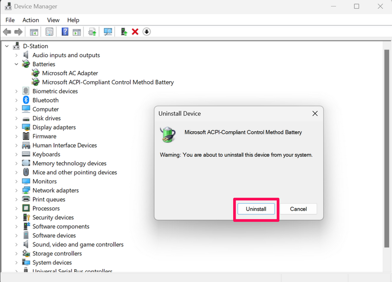 5. Installieren Sie den Microsoft ACPI-kompatiblen Steuerungsmethoden-Batterietreiber unter Windows 11 neu
