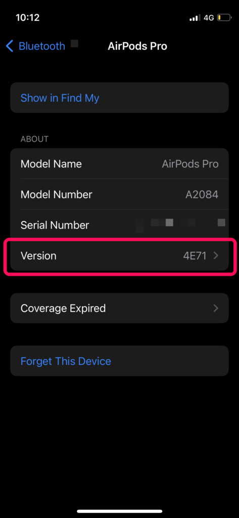 Wenn die Versionsnummer nicht übereinstimmt, müssen Sie Ihre AirPods -Firmware aktualisieren. Leider gibt es derzeit keine Möglichkeit, die Firmware von Airpods ohne iPhone manuell zu aktualisieren.