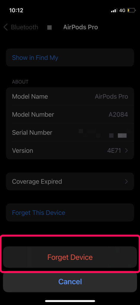 4.Am Ende der Seite tippen Sie auf “Vergessen Sie dieses Gerät. ““