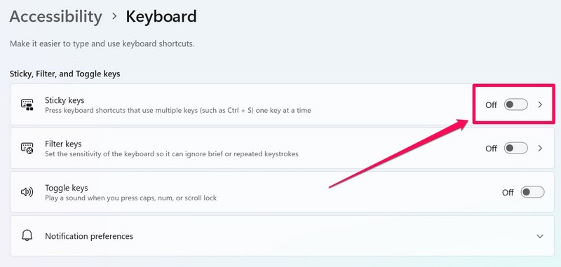 7. Deaktivieren Sie Sticky Keys in Windows 11