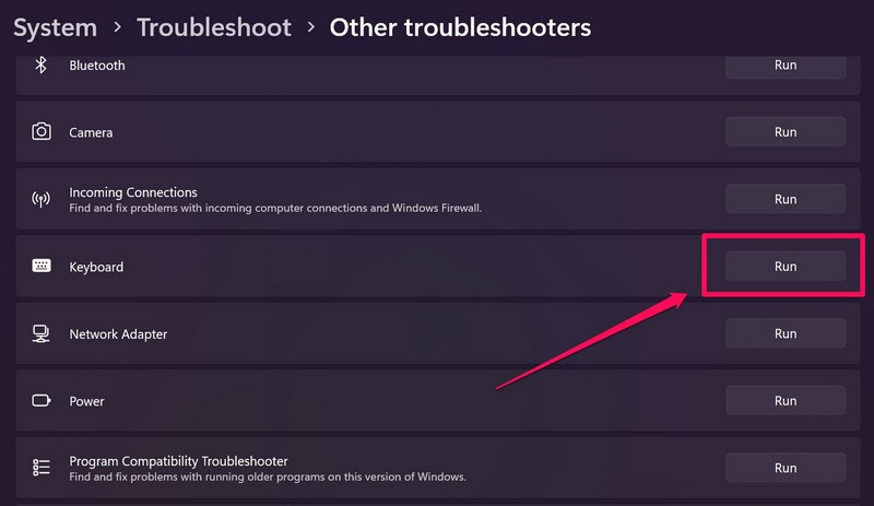 4. Führen Sie die Tastatur-Fehlerbehebung in Windows 11 aus