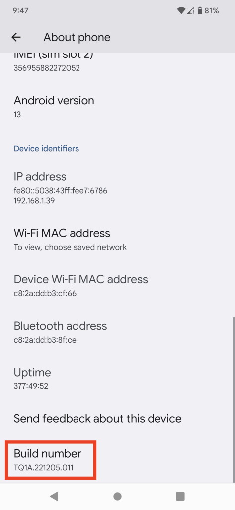 3.Drücken Sie etwa sieben Mal ununterbrochen auf die Build-Nummer, um die Entwicklereinstellungen zu aktivieren.