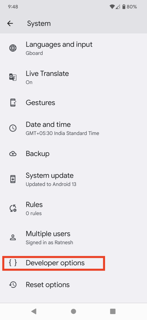 4.Beenden Sie die Einstellungen und öffnen Sie sie erneut. Jetzt geh zuSystemund auswählenEntwickleroptionen.