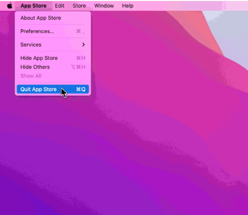 Falls es keine Probleme mit Ihrer Internetverbindung gibt und Ihr Mac App Store immer noch nicht funktioniert oder lädt, können Sie versuchen, das Beenden Ihres Mac App Store zu erzwingen. Klicken Sie dazu mit der rechten Maustaste auf das App Store-Symbol und wählen SieBeenden Sie den App Store.