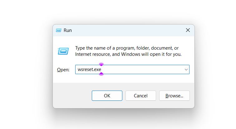 1.Öffnen Sie dieBefehlsfeld ausführenVerwenden Sie die Windows + R-Taste und geben Sie einWSReset.exedarin.